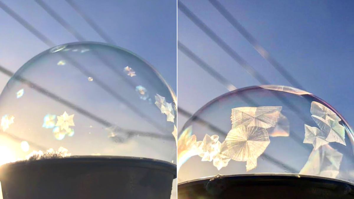 氷点下10度の夜にシャボン玉が凍る様子